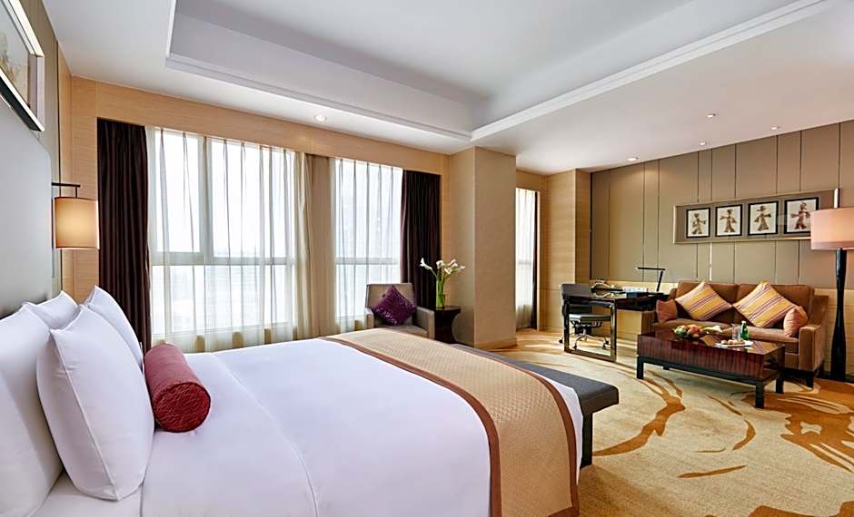 Providing free toiletries and bathrobes, this suite includes a private bathroom with a bath, a shower and a hairdryer. The spacious air-conditioned suite provides a flat-screen TV with cable channels, a mini-bar, executive lounge access, a seating area as well as city views. The unit offers 1 bed.